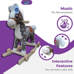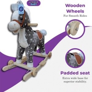 - 2-in-1 Design: Functions as both a rocking horse and a ride-on toy with wooden wheels.