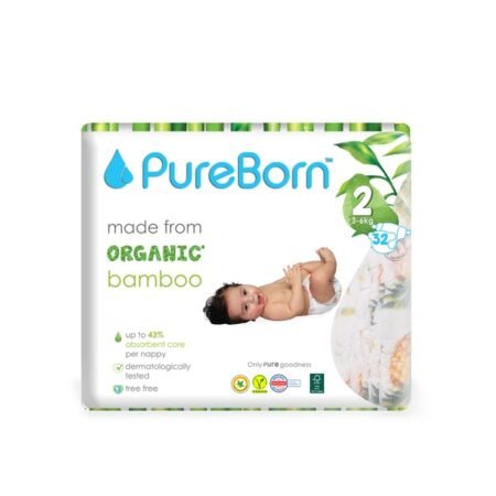 Pureborn 32Pcs Organic Bamboo Diapers Size- 2 [ 3-6kg ]