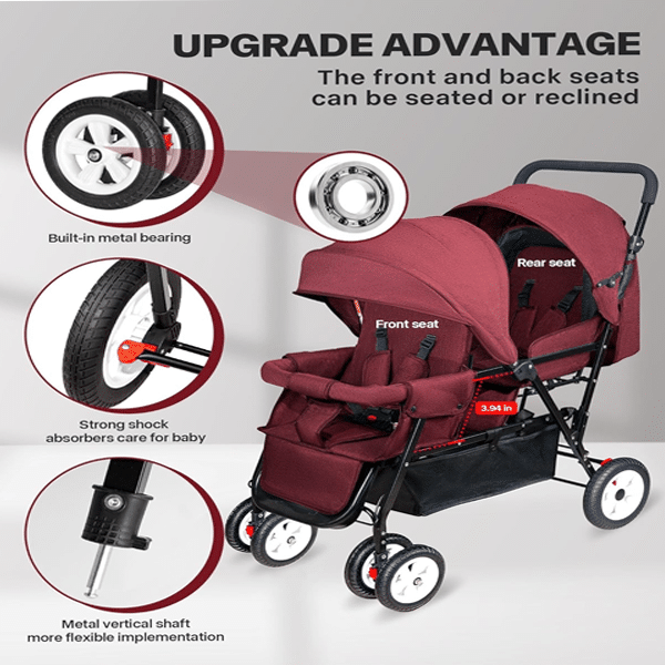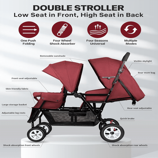 - Double Stroller Design: Perfect for infants and toddlers with comfortable tandem seating.
