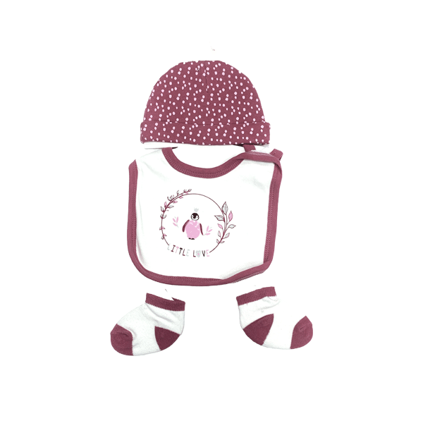 Newborn Baby 3 Pcs Gift Set (Bib, Anti-Scratch Mittens & Socks 0-6 Months) NW4G26