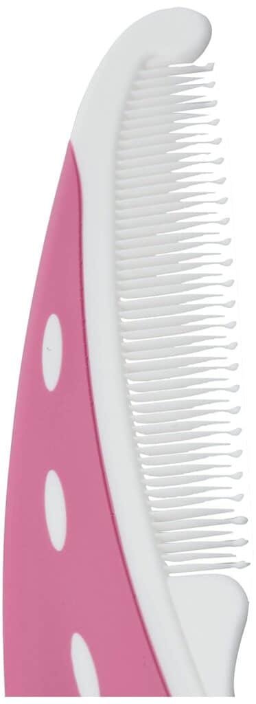 For daily hair care of babies and toddlers Brush with soft bristles made from 100% natural hair Comb with rounded tips to protect the scalp Colour: pink