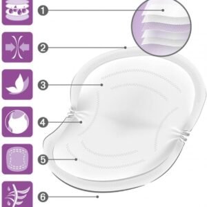 Offers high performance with instantly absorbent fleece Super soft inner fabric and breathable outer layer are especially kind to skin Body-contoured shape fits the breast perfectly and is virtually invisible under clothing Fixing strips keep the pads in place to avoid slippage throughout the day Contains 30 pads