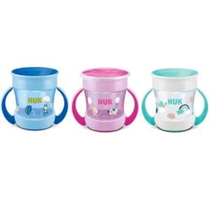 Highlights Has a unique 360° drinking rim shape that allows easy drinking from all sides Integrated air vent for uninterrupted flow while drinking Soft, ergonomic handles to encourage gripping. Spill-proof, easy to assemble and clean Includes lid for protection on the go BPA Free, 160ml, for babies aged 6 months plus