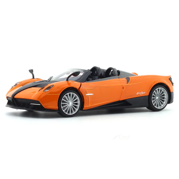 - Diecast Pagani Huayra Roadster model in vibrant orange
